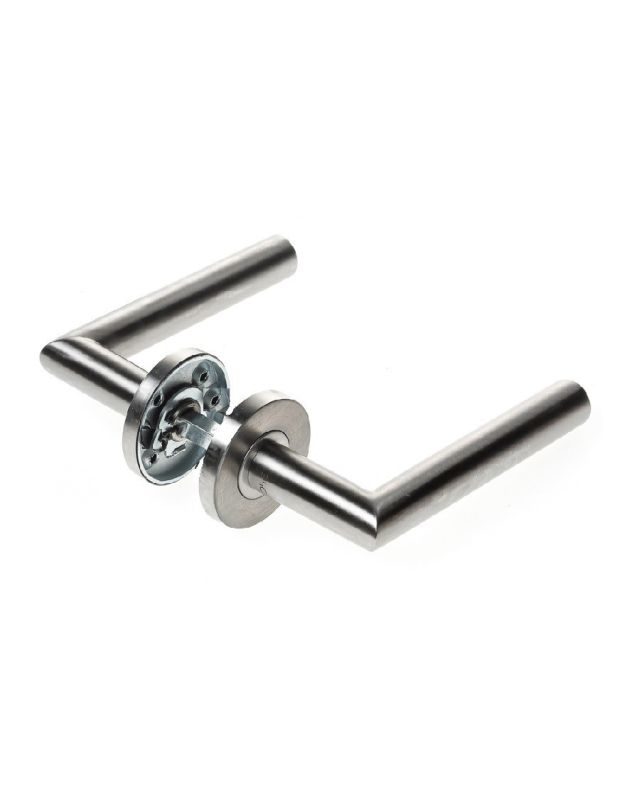 6. D4E Stainless Steel Hollow Lever Handle on Rose, L Design, 19mm